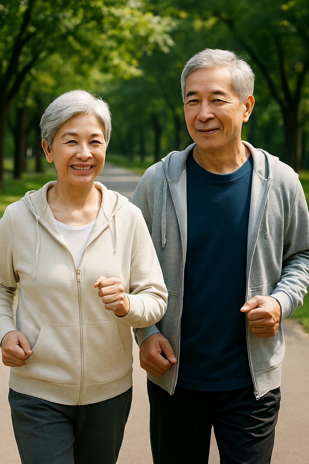 가장 효과가 검증된 혈관 운동은 ‘걷기’입니다. 70대에게 무리 없는 강도로 혈관 탄력 증가·LDL 감소 효과가 큽니다.
