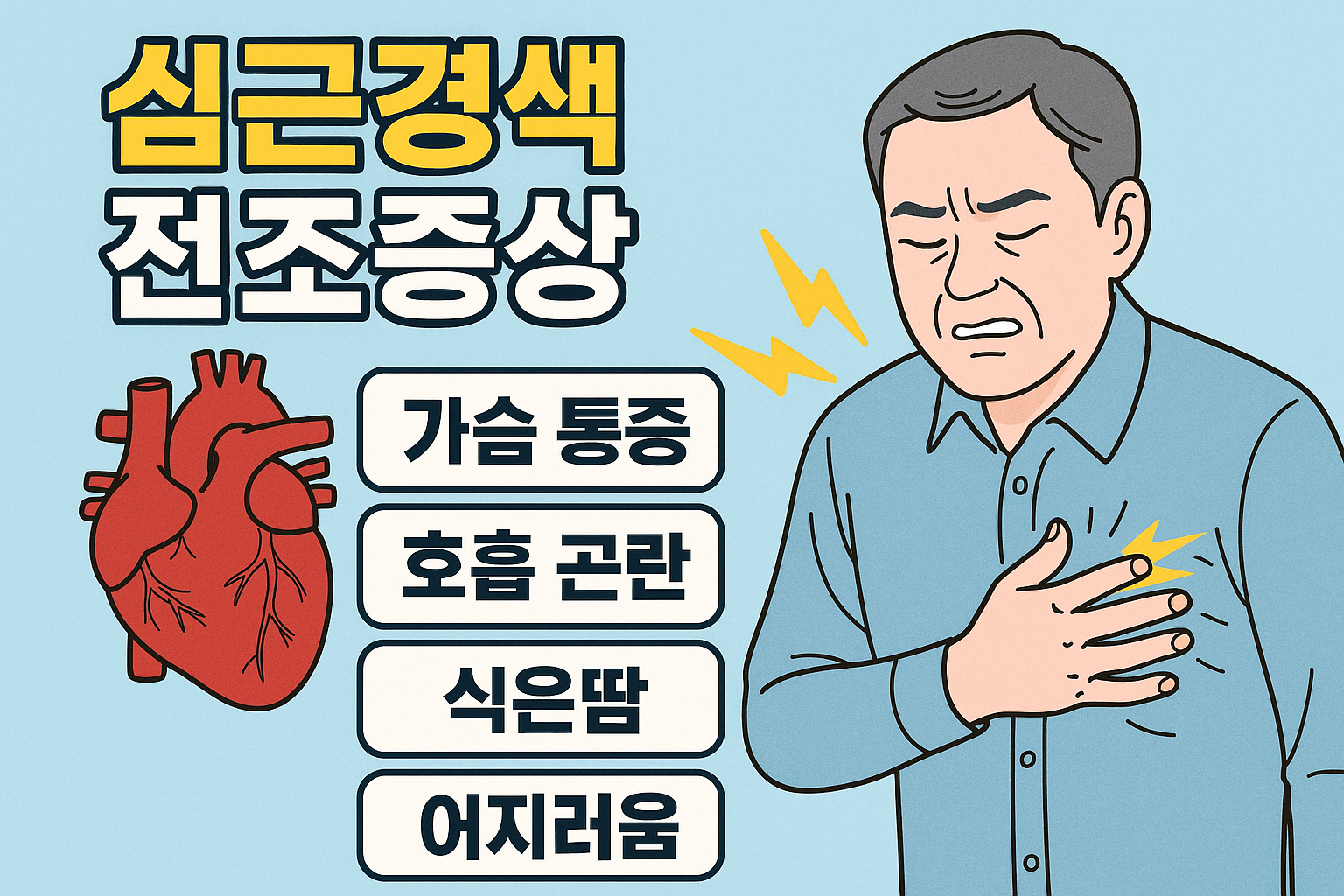 중년층에게 치명적일 수 있는 질환인 심근경색(acute myocardial infarction). 돌연사까지 이어질 수 있는 만큼, 그 전조 증상을 미리 인지하고 빠르게 대처하는 것이 매우 중요합니다. 이번 글에서는 심근경색의 전조증상, 최근 김수용 개그맨의 쓰러짐 사건과의 연관 가능성, 전조증상이 나타났을 때 대처방법, 그리고 예방 습관까지 종합적으로 다뤄보겠습니다.