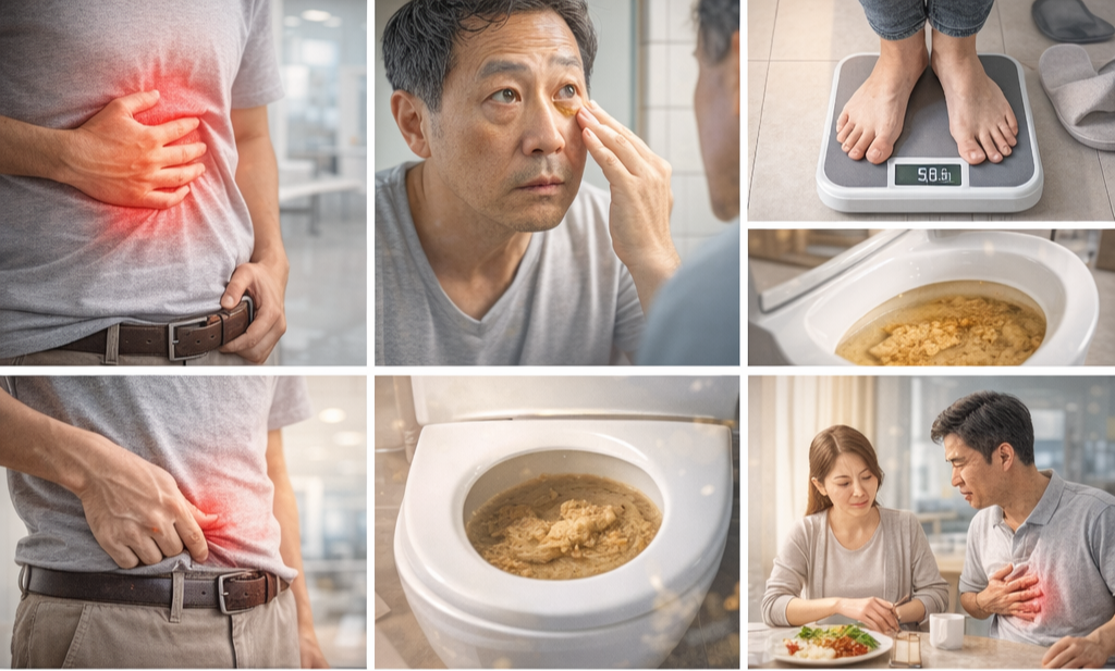 특히 소화 문제, 이유 없는 체중 감소, 눈이나 피부가 노래지는 황달 같은 변화는 단순 피로나 소화불량으로 넘기지 말고 점검해야 합니다.