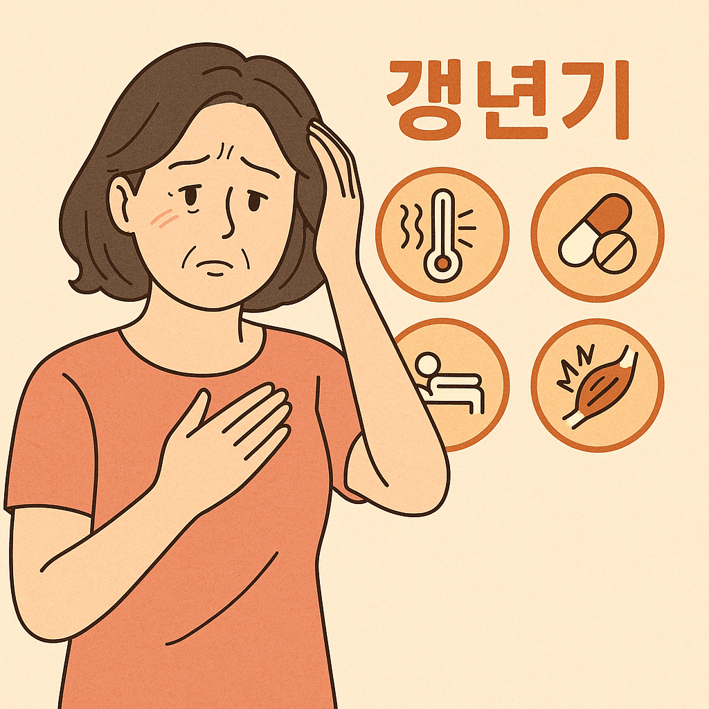 - 주요 증상: 안면홍조, 수면장애, 우울감, 근육통, 피로 등